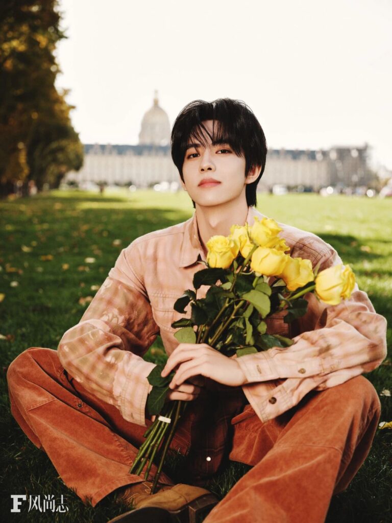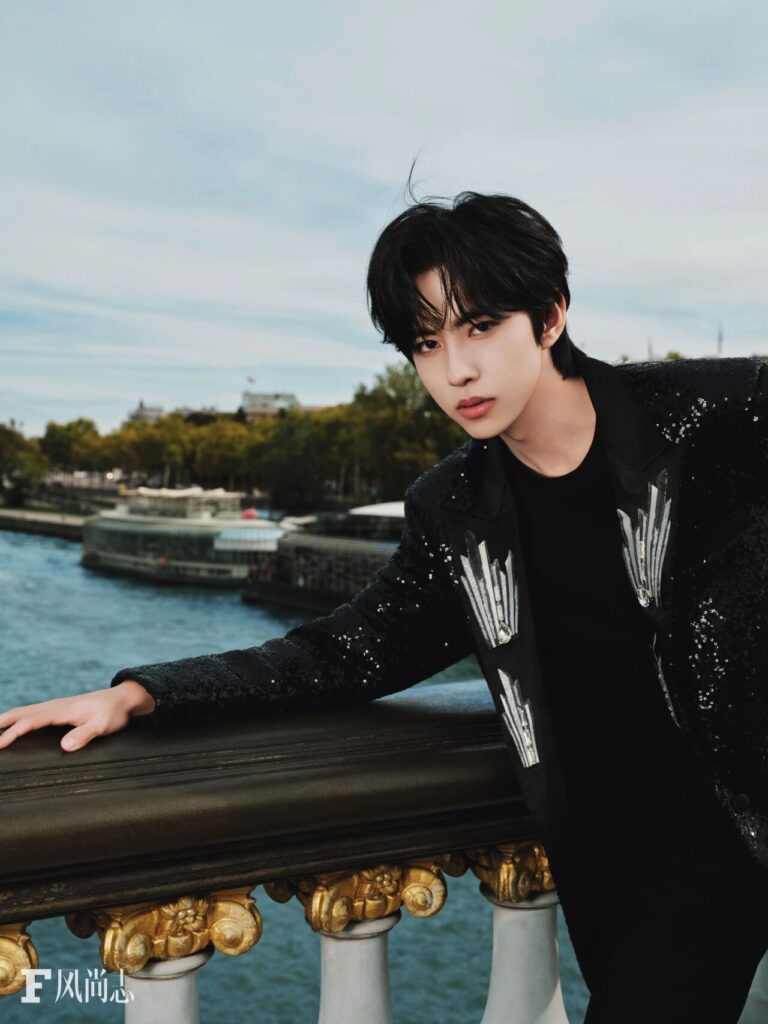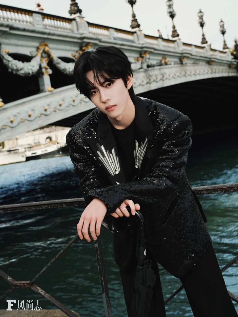 On the day of the magazine cover shoot, there was a small but heartwarming moment worth sharing. During a location change, the team encountered a local Parisian family of three who were very fond of Liu Xuancheng, especially their child, who looked at him with a bright, friendly smile. Seeing this, Liu Xuancheng took the initiative to walk over and take a photo with the child. The little one skipped away happily afterward, and Liu Xuancheng’s face lit up with a pure, childlike smile in return.